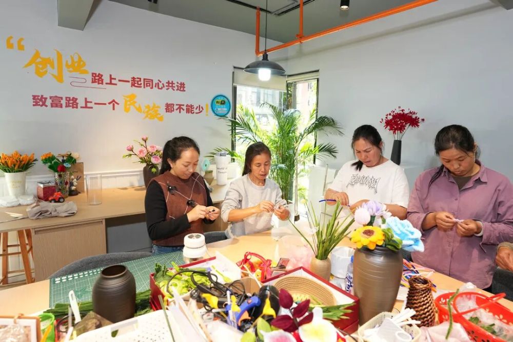 民族手工文創(chuàng)工坊旨在解決社區(qū)婦女就業(yè)問題。(郝亞鑫 攝)