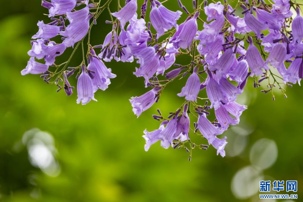 云南省昆明市官渡區(qū),藍花楹盛開(4月17日攝)。新華網(wǎng)發(fā)(郭武輝 攝)