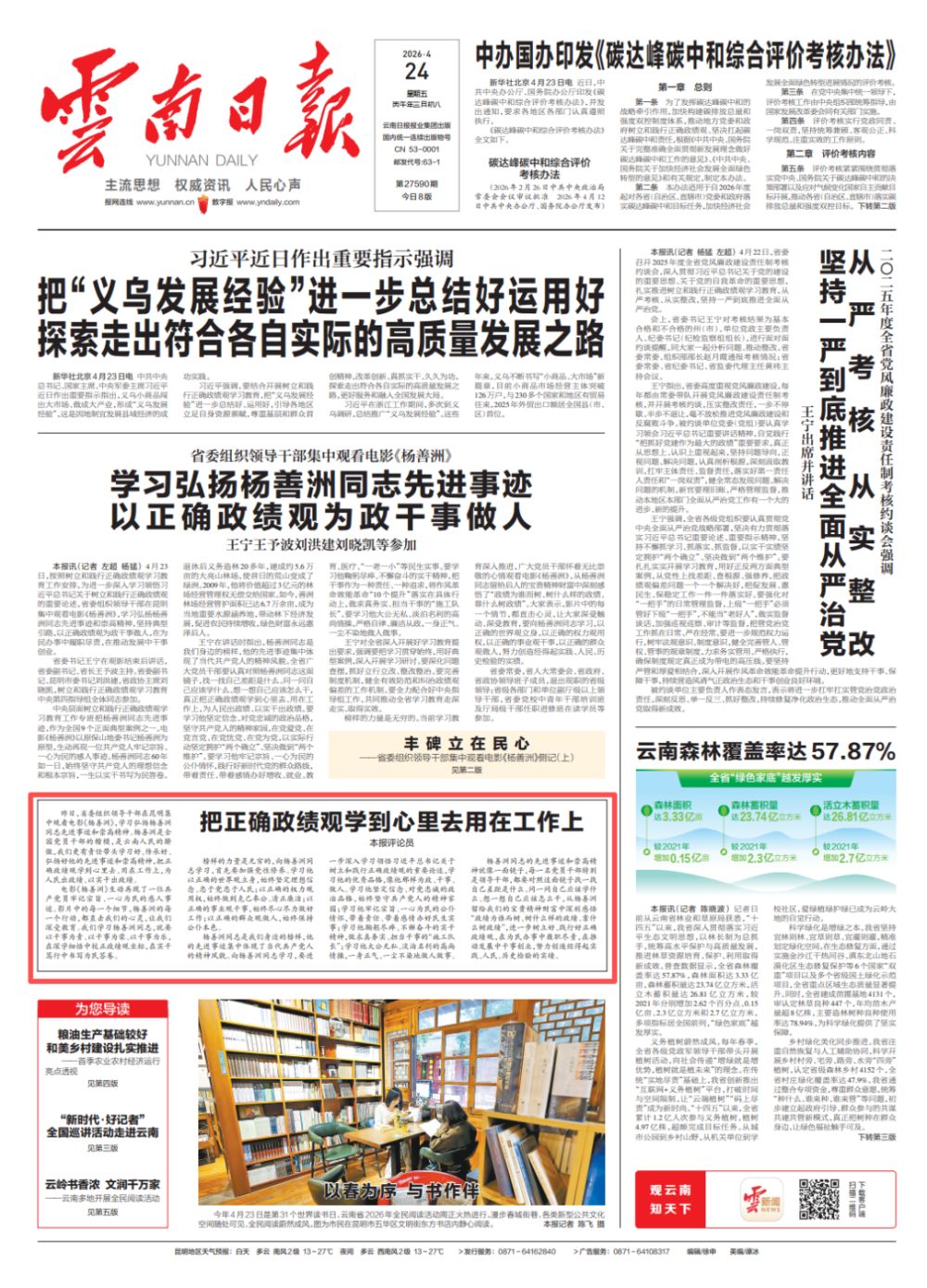 昨日,省委組織領(lǐng)導(dǎo)干部在昆明集中觀看電影《楊善洲》,學(xué)習(xí)弘揚(yáng)楊善洲同志先進(jìn)事跡和崇高精神。楊善洲是全國黨員干部的楷模,是云南人民的驕傲,我們更有責(zé)任帶頭學(xué)習(xí)好、傳承好、弘揚(yáng)好他的先進(jìn)事跡和崇高精神,把正確政績觀學(xué)到心里去、用在工作上,為人民出政績、以實(shí)干出政績。