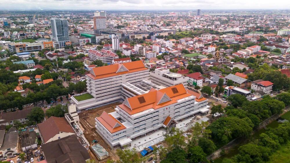 這是2024年9月11日在老撾首都萬象拍攝的中國援老撾瑪霍索綜合醫(yī)院(無人機照片)。新華社發(fā)(凱喬攝)