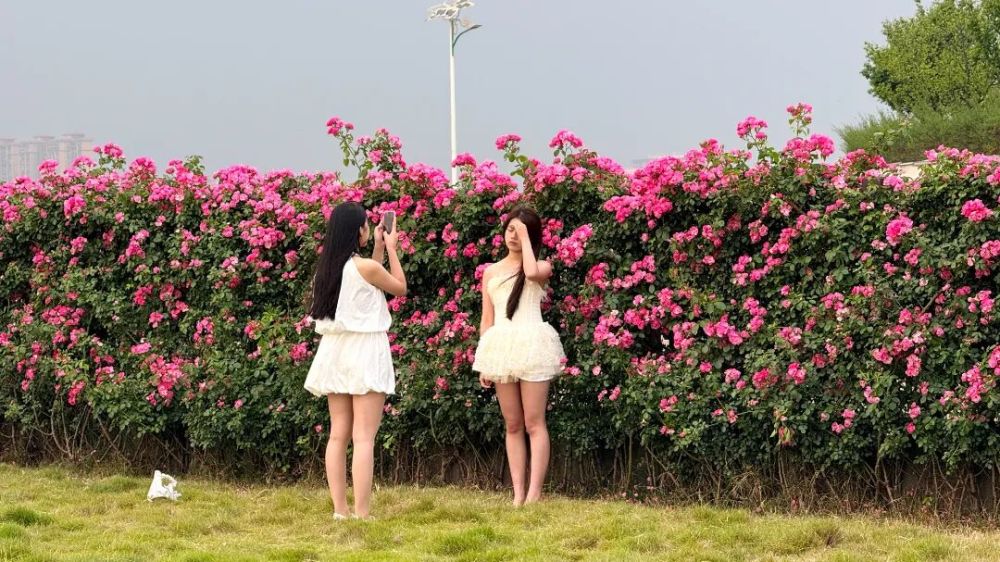 繁花盛放,美景出圈。唯美爛漫的薔薇花墻,吸引了大批市民慕名前來(lái)休閑觀賞、拍照打卡。大家穿梭于花墻之下,或是駐足細(xì)賞繁花盛景,沉浸式邂逅初夏美好;或是定格美好瞬間,記錄限定春日浪漫。不少市民精心穿搭,在繁花掩映間拍照留念,家長(zhǎng)攜孩童漫步花間,親近自然、放松身心,歡聲笑語(yǔ)與滿園花香相融,愜意悠然。