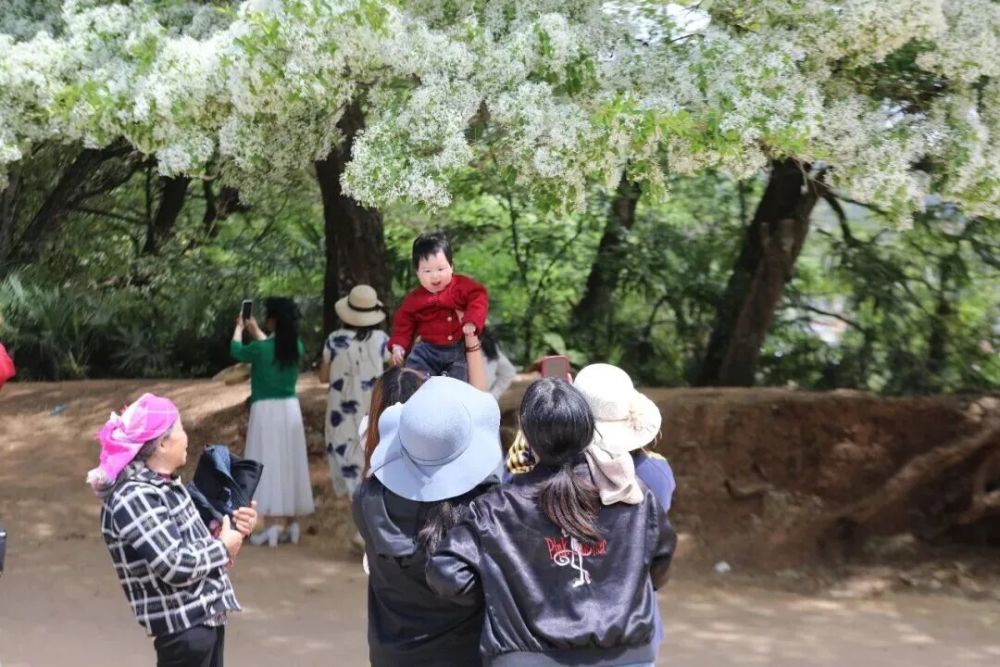 充分激發(fā)群眾主體作用,依靠群眾自發(fā)宣傳、真情推介,以原生態(tài)、接地氣的傳播方式,推動鄉(xiāng)村生態(tài)資源有效出圈。一是鄉(xiāng)野傳聲,播撒流量星火。蒲草塘村現(xiàn)存百年以上流蘇古樹15株,其中最大古樹胸徑超60公分,樹高約18米,屬國家二級保護植物,連片野生古樹群兼具重要生態(tài)價值、觀賞價值與科研價值。當?shù)厝罕娂瓣P注古樹保護的社會各界人士,長期記錄流蘇古樹生長周期與花開花落景致,通過短視頻平臺等新媒體渠道,常態(tài)化發(fā)布古樹景觀、花期信息、觀賞指引等內(nèi)容,以樸實視角展現(xiàn)古樹風姿與鄉(xiāng)村生態(tài)風貌,持續(xù)積累網(wǎng)絡關注度,為古樹景觀走紅奠定堅實基礎。二是實景流芳,引爆云端盛譽。依托流蘇古樹盛花期優(yōu)美的自然景觀與良好的觀賞體驗,相關實景圖片、短視頻在網(wǎng)絡平臺快速傳播,形成多層次、廣覆蓋的裂變式宣傳效應。大批網(wǎng)友通過線上關注、線下打卡,主動分享觀賞體驗與現(xiàn)場實景,推動蒲草塘村“四月雪”景觀知名度持續(xù)攀升,線上熱度持續(xù)發(fā)酵、廣泛擴散。傳播范圍逐步從本地圈層拓展至周邊州市,從小眾關注升級為區(qū)域熱議,蒲草塘村從偏遠村落一躍成為省內(nèi)外具有較高知名度的生態(tài)文旅打卡地,鄉(xiāng)村文旅影響力顯著提升。三是民心共情,匯聚諸方客流。憑借群眾自發(fā)式、原生態(tài)的宣傳推廣,以真實性、親切感打破地域限制與圈層壁壘,吸引各地游客慕名前往。古樹景觀與鄉(xiāng)村風貌相得益彰,優(yōu)質的觀賞體驗形成良好口碑效應,進一步放大景點吸引力與影響力,為蒲草塘村帶來持續(xù)穩(wěn)定的人流、客流與信息流。依托網(wǎng)絡熱度與口碑傳播,鄉(xiāng)村生態(tài)資源高效轉化為發(fā)展資源,為鄉(xiāng)村旅游起步發(fā)展筑牢基礎,實現(xiàn)了生態(tài)資源價值與鄉(xiāng)村發(fā)展效益的同步提升。